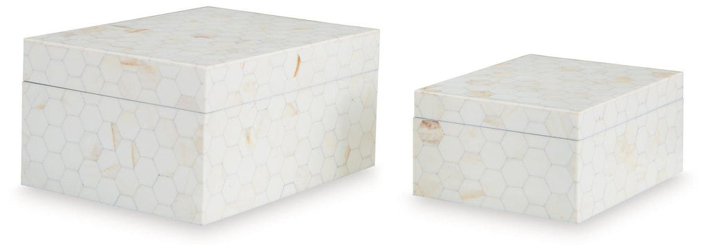 Looking for a casually cool home accent? This set of boxes stacks up beautifully. A hexagonal mosaic design and cream finish bring a laid-back element to your decor. What a stylishly effortless way to refresh your shelves and tabletops.