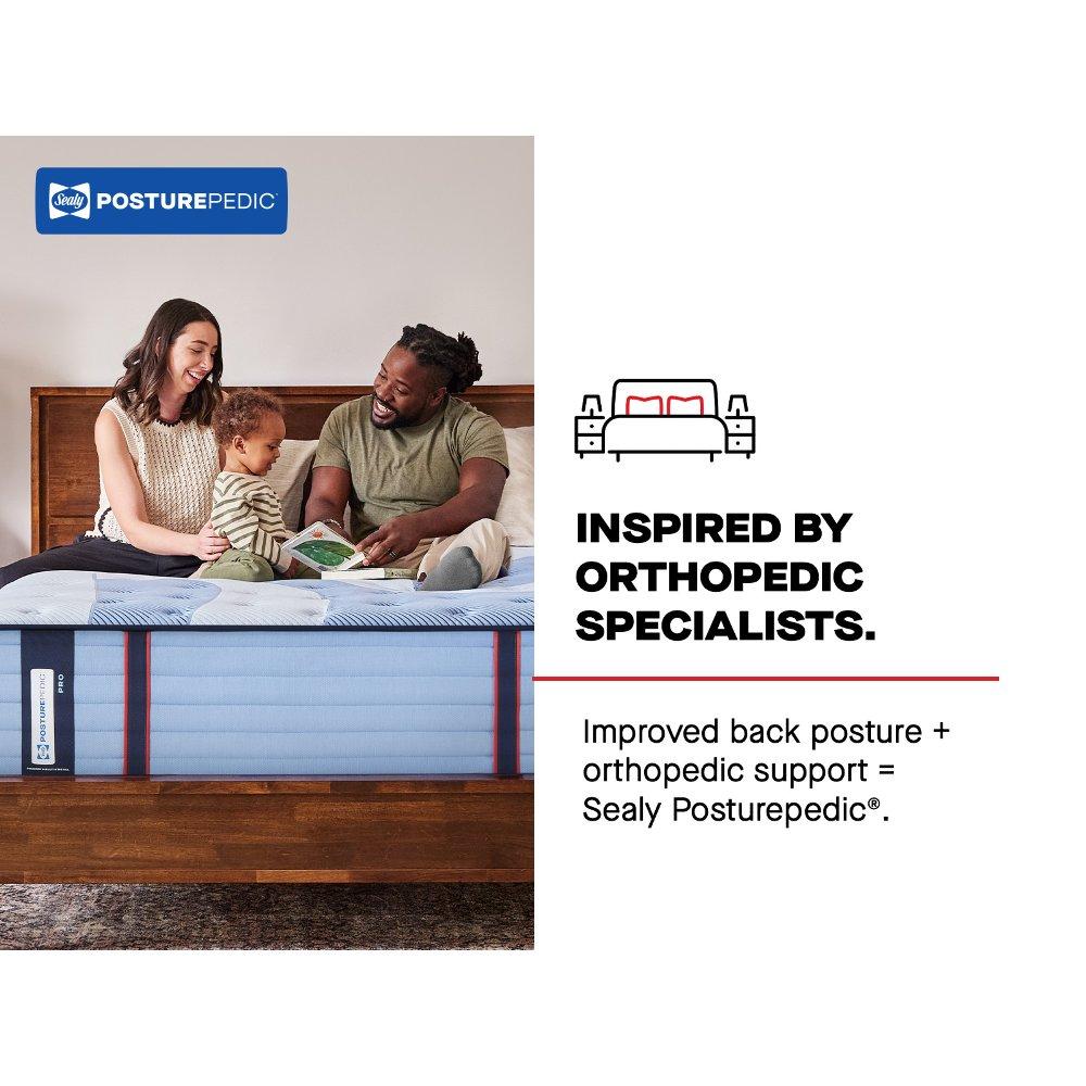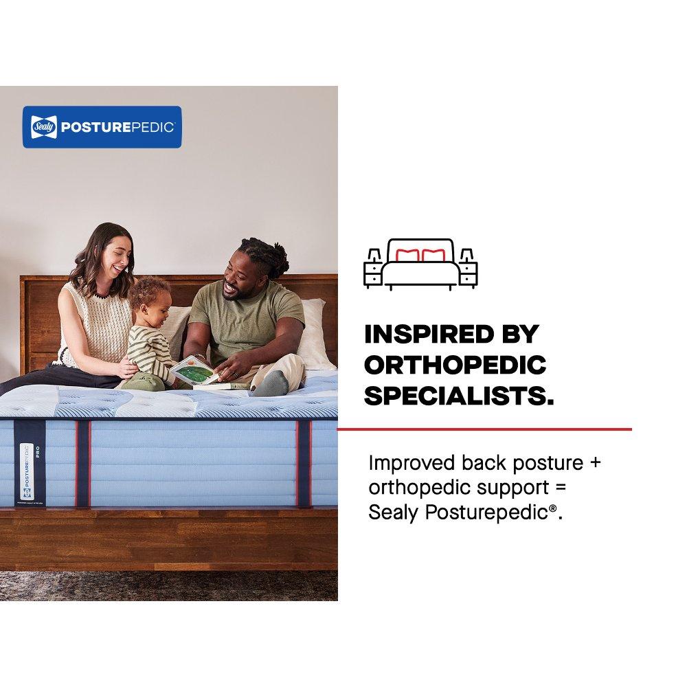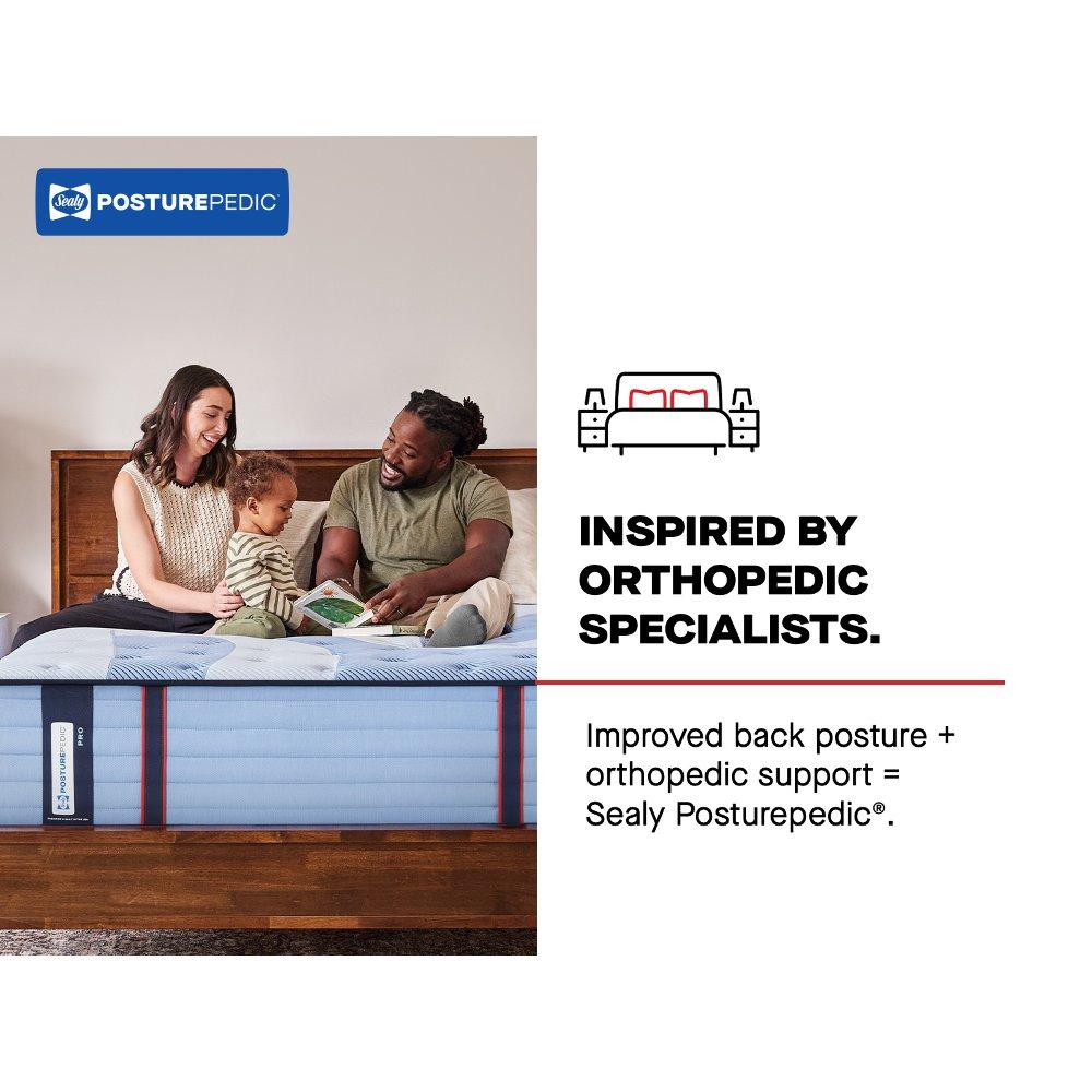 The Sealy Posturepedic® Pro Spring Firm mattress offers pressure-relieving comfort and targeted support to help maintain natural body alignment and reduce nagging Bed Aches™ night after night. The orthopedic-inspired Posturepedic® Pro Support System features exclusive PrecisionFit™ Coils enhanced by MaxSupport™ Technology for all-over support. And the DuraFlex™ Coil Edge provides a reinforced solid surface that’s built to last.